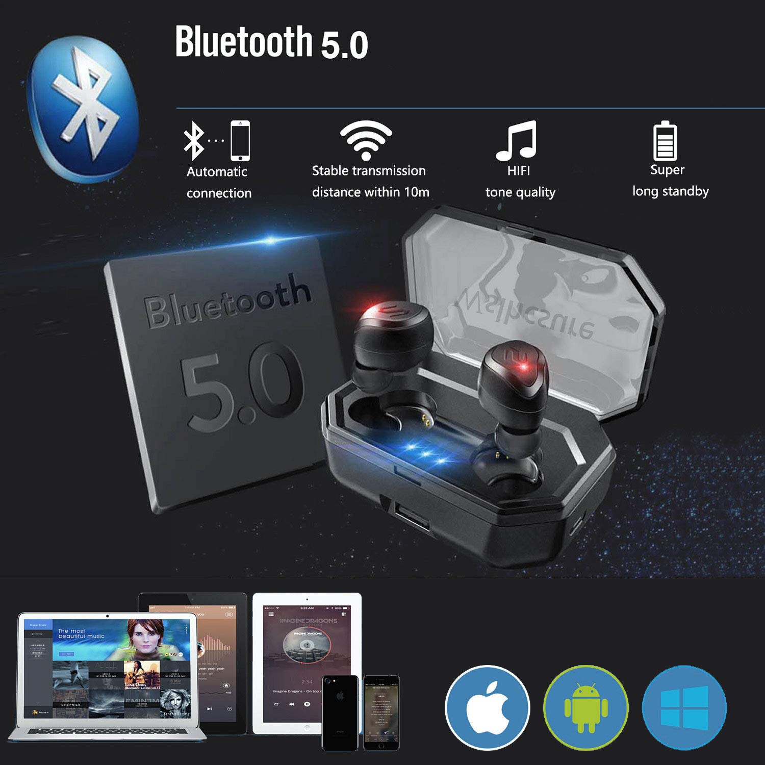 ❤【Bluetooth 5.0 de alto rendimiento】❤ Los auriculares bluetooth de wslhcsure están equipados con el más avanzado Bluetooth 5.0, la velocidad de transmisión es 4 veces mayor que la velocidad tradicional. Disfrute de la operación suave durante la reproducción de un video o un juego. La distancia de transmisión es de unos 10 metros, que es compatible con el 99% de los dispositivos y sistemas Bluetooth en el mercado.