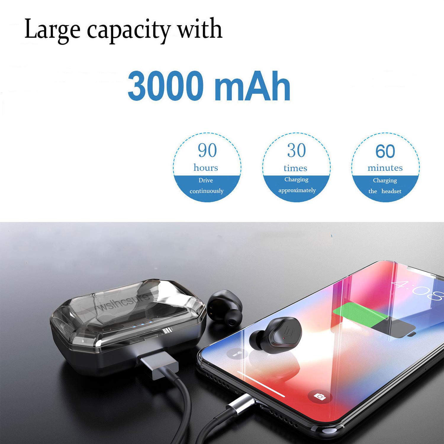 🎶【Calidad de Sonido HIFI 】🎶 Micrófono de alta calidad (con decodificación AAC) y tecnología de renderización HD sin pérdida incorporados. Producen una calidad de sonido increíble: graves profundos y agudos claros. Los auriculares inalámbricos Wslhcsure son de alta calidad de sonido HIFI.