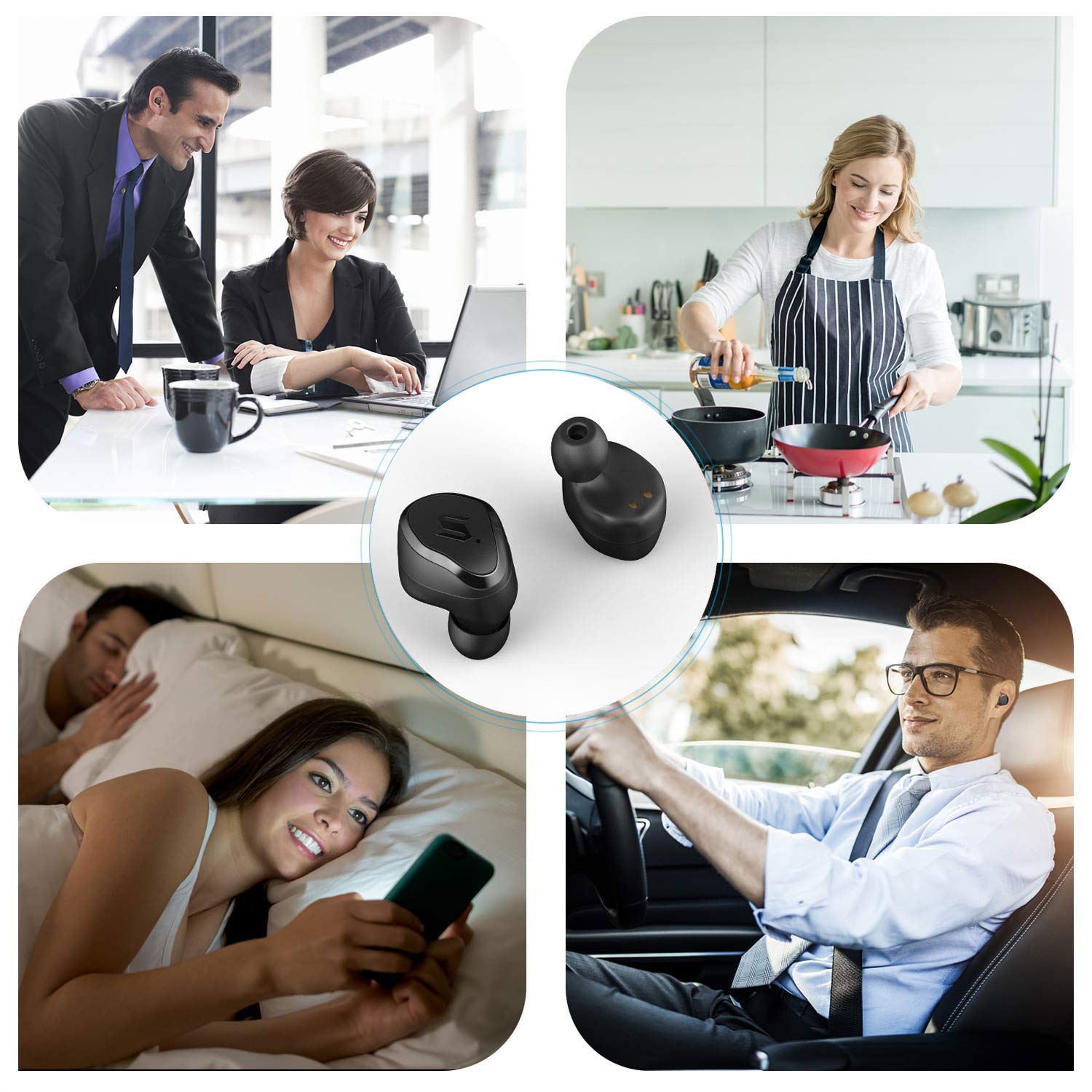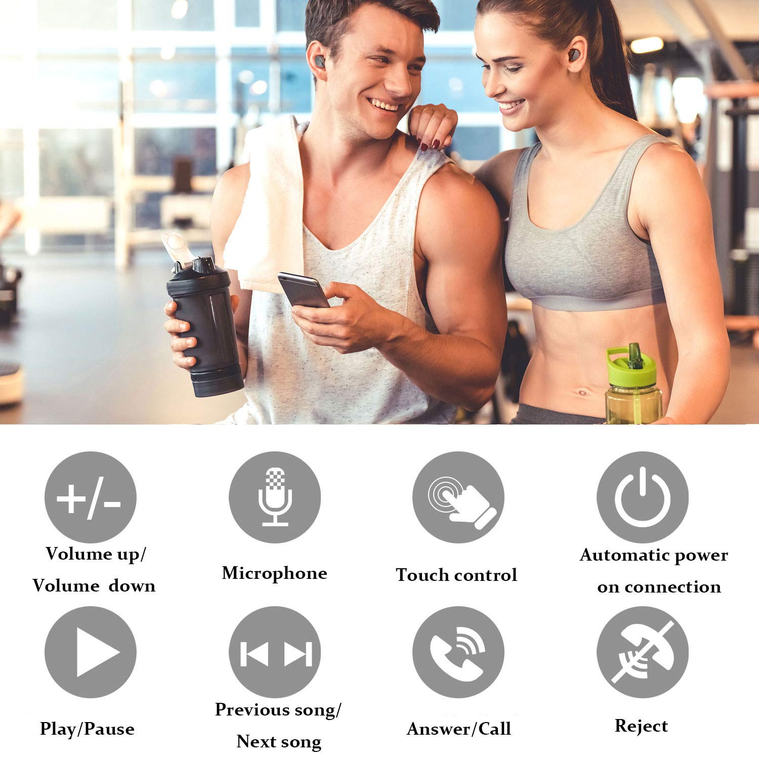 【Auriculares táctiles * Reducción de ruido CVC 8.0】 Auriculares bluetooth inalámbricos operación táctil verdaderamente inalámbrica, auriculares inalámbricos independientes izquierdo y derecho. Operación de la pantalla táctil, compatible con llamada por Siri, encendido / apagado, reproducción / pausa de música, canción anterior / siguiente, subir / bajar de volumen y rechazo de llamadas. La operación es simple y conveniente. La tecnología de reducción de ruido digital CVC 8.0 filtra de forma inte