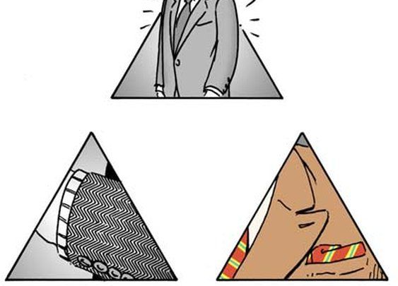 - Ajuste: Se encuentra en la parte superior de la pirámide. Todo lo demás viene de él. Si una prenda no encaja bien, ninguna de sus otras características importa -no va a verse bien en ti. Ajuste siempre debe ser su primer punto de partida cuando consideres una compra-.
