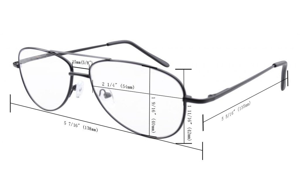 EYEKEPPER GAFAS DE LECTURA ESTILO PILOTO-la distancia de pupila(PD)es 59-63mm,la desviacion de la distancia de pupila(PD)menos de 2mm,la desviacion por la fuerza menos de 0.02,la desviacion de las lentes en linea horizontal menos de 1mm.