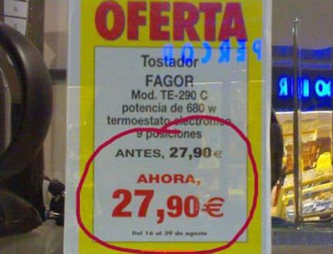 En el 99% de los casos se trata efectivamente de descuentos reales, pero a veces el encargado de la tienda la caga. Algunos ejemplos que te harán reír un poco.