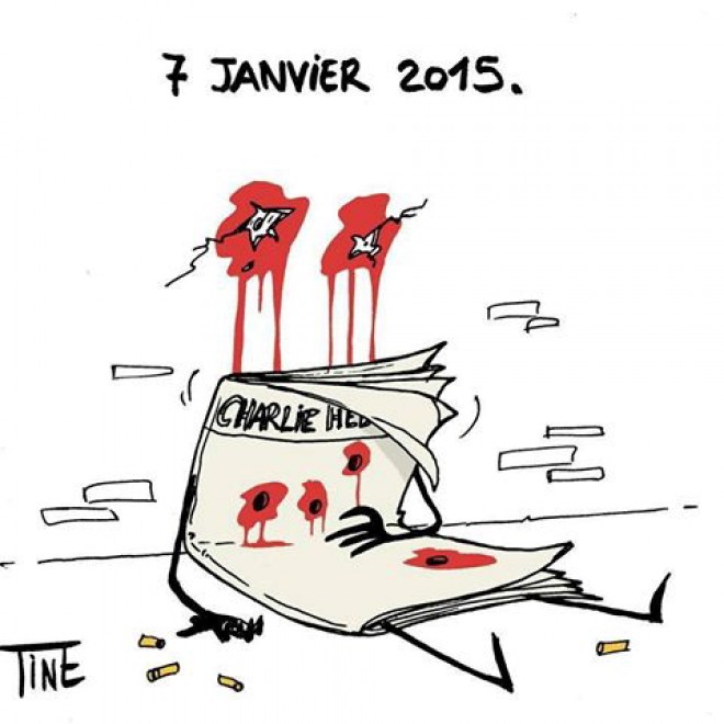 Fotos Je Suis Charlie Por Redacción hm - 7 enero, 2015 0 6759 Facebook Twitter Pinterest WhatsApp Tine ◄ Volver Siguiente ► Imagen 4 De 26 Desde todo el mundo llegan las viñetas de solidaridad de los colegas de los periodistas y diseñadores fallecidos en el ataque terrorista del pasado 7 de enero en París contra el semanal Charlie Hebdo. Relacionado