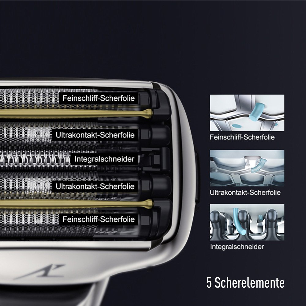 Flexible: Cabezal de corte se adapta de la 5d en 6 direcciones perfectamente a los contornos de la cara con sus 5 elementos de afeitar y permite una hautnahe afeitado apurado.