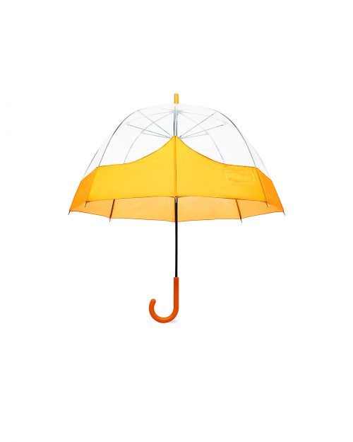 Paraguas de burbuja transparente. El atrevido ribete en color de la cubierta hace la forma del bigote de Hunter. Tiene un diseño de apertura manual, empuñadura engomada y estructura de varillas resistentes y flexibles en caso de viento. Dispnible en varios colores: negro, coral intenso, rojo militar, oliva oscuro,amarillo, naranja, azul oasis y rosa intenso.